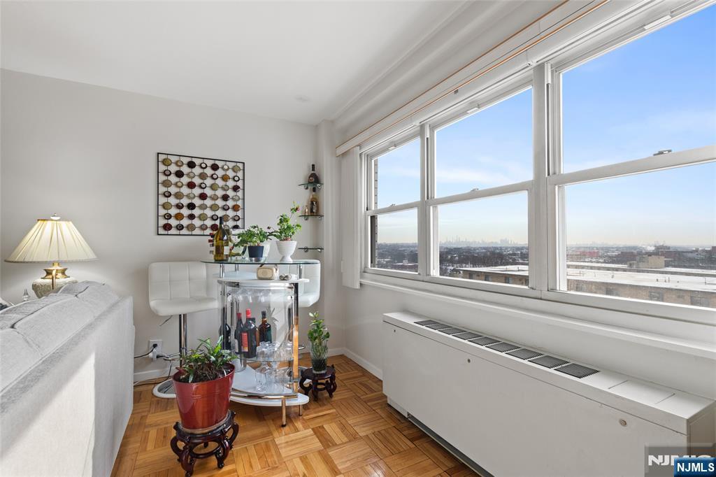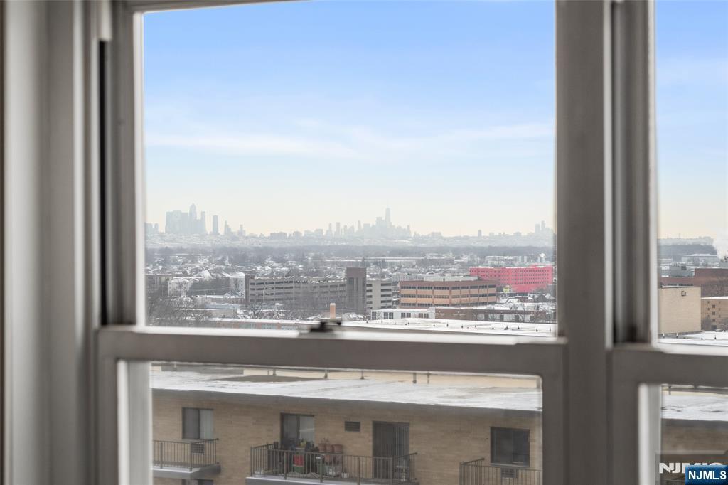This oversized 1 bed co-op offers over 1,000 sq.ft of bright, well designed living space with sweeping NYC skyline views. Featuring tall ceilings, generously sized rooms, and a highly functional layout, this home delivers both comfort and flexibility. A welcoming entry foyer leads into an expansive living room and a formal dining area that can easily be converted into a den or home office. The eat in kitchen offers excellent storage and workspace, while the massive primary bedroom includes two large closets and easy access to the nicely updated bathroom. Thoughtful updates, ample storage, and an open flow make this unit ideal for both everyday living and entertaining. The Whitehall is a full service luxury building offering 24 hour doorman and security, a state of the art fitness center, outdoor pool with lounge area, BBQ space, community room with kitchen, on site management office, and a full time resident building manager. Reserved parking is available for a small additional fee. Perfectly located with an NYC Express bus right in front and train service just a few blocks away, this home offers unbeatable convenience for commuters. The monthly HOA fee includes taxes, insurance, gas, electric, water, storage bin, common area maintenance, and all building amenities. With continued redevelopment throughout Hackensack driving increased demand and long term value, this is an excellent opportunity to own in one of the area's most established and well regarded buildings.