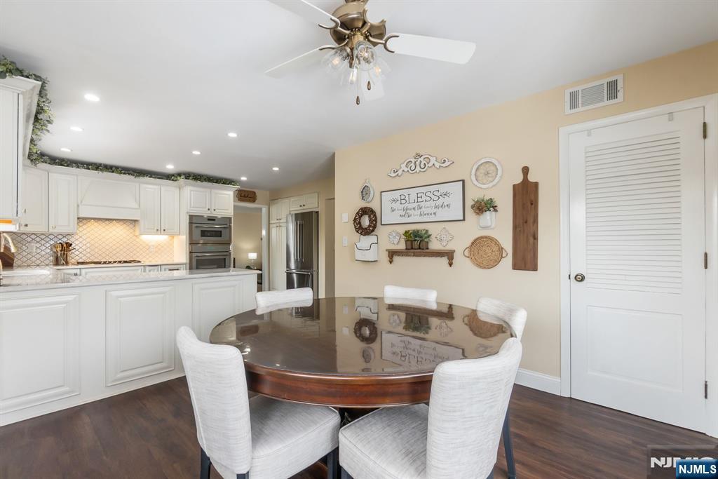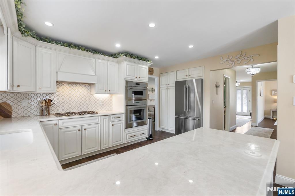 This lovely home has been meticulously updated for ultimate convenience. The main level has a an airiness with it's spacious living & dining rooms with rich hrdwd flrs into a beautiful EIK. Outfitted with quartz counters & stainless appliances, the kitchen flows into a cozy breakfast nook. The backyard is a private retreat for summer bbqs or quiet reflection after a long day. Upstairs, 4 nicely sized bedrooms supported by 2 full baths with sophisticated, modern fixtures. The ground level offers a quiet space for a home gym or media room. Living here means you are part of a neighborhood where weekend mornings are spent visiting local cafes or shopping on the Boulevard. The location is a dream being positioned minutes from the Teterboro & Wood-Ridge train stations, while the NJ Transit 163 bus takes you direct to Port Authority in 45 min. With immediate access to Route 17 and I-80, the home serves as a serene sanctuary that never feels isolated from the energy of the city.