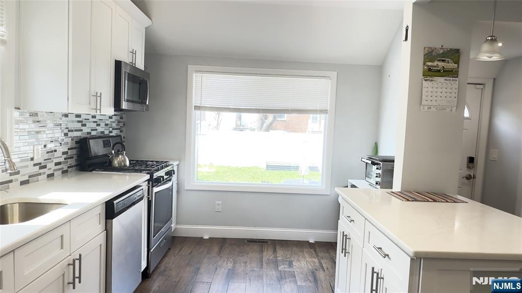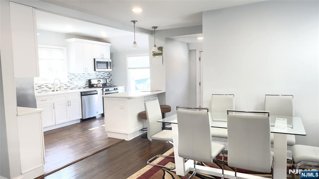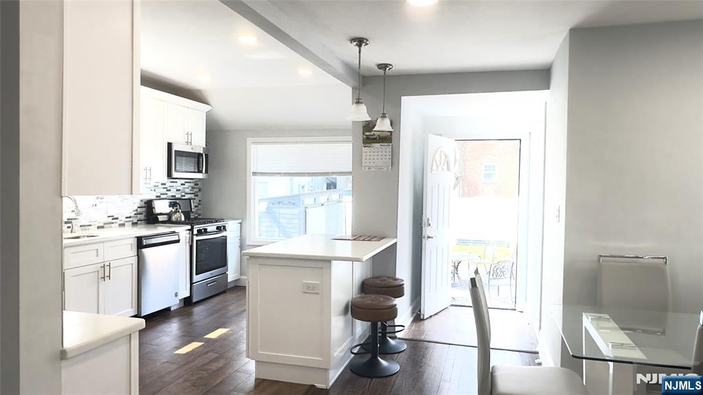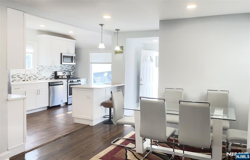 Welcome to this beautiful, move-in ready, recently RENOVATED colonial home, with 3 Bedrooms, 2 Full Baths. Newer recess lighting and hardwood floors throughout the whole home. The first floor boasts a large open floor plan for entertainment: large Living/Family room, beautiful kitchen, formal dining room, updated convenient full bathroom, 2 side doors to the backyard and to the driveway. Updated kitchen w/ quartz countertop, SS appliances, island with storage, seating and plenty of prep space and storage. Upstairs you will find 3 generously sized bedrooms and an updated large full bath. A fully finished basement waiting for your imagination with laundry and plenty of storage, easy access to the backyard through the bilco doors or the side door. Plenty of street parking but that isn't needed with the driveway that could fit 3+ cars. Fully fenced in backyard that is ready for all your BBQ's and summer nights. This home has everything and more! Nothing to do but move in and unpack! Great Opportunity to own in a wonderful neighborhood that is also Close to schools, walking distance to local shopping, NYC bus, bus to Harrison Path Train, & close to all major roadways (17, 21. 280, GSP, NJTPK)